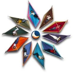 - Multiple bike-frame attachment configurations for Burley compression stuff-sack with daisy-chain webbing system