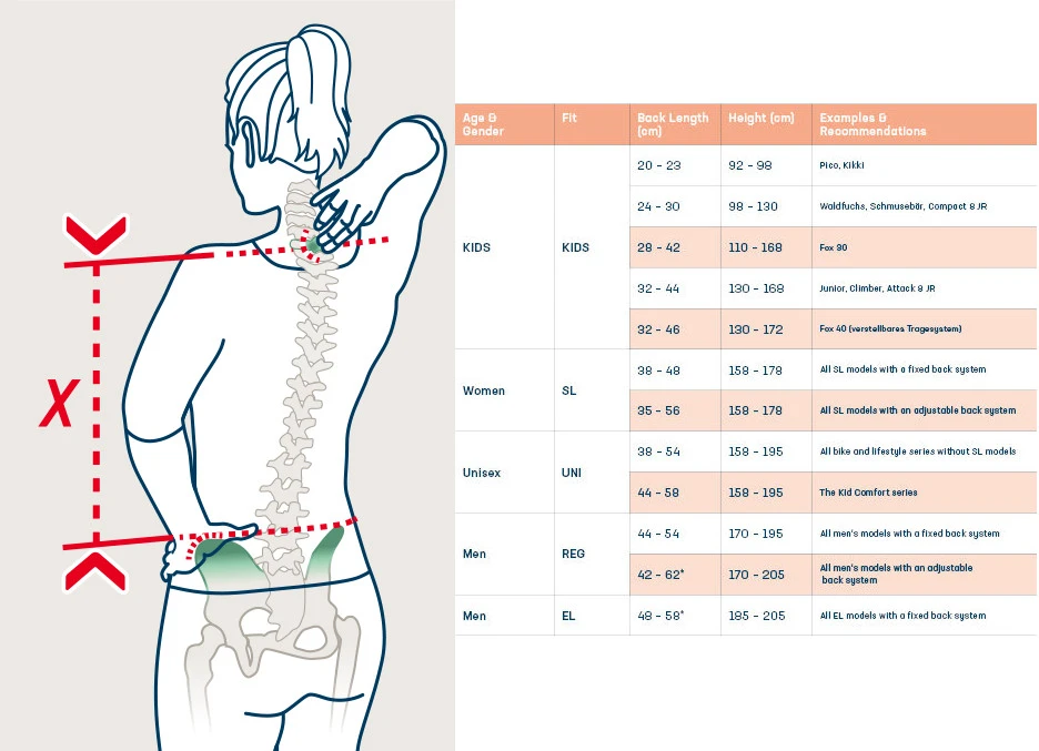 The carrying system in the SL model is somewhat shorter than in the Deuter standard backpacks. In addition, the carrying systems is specially adapted to the female anatomy.