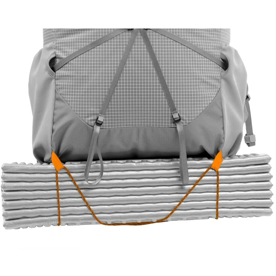 Side zig-zag compression straps and a strap that runs across the backpack with quick-release hooks keep gear like mats or an outer tent securely in place. Those who use the Lightning for mountaineering attach ice tools to the designated loops and central daisy chain. Shorter shoulder straps and shorter hip belt make the Lightning Wmns ideally suited to female stature.