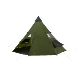 BLACK FALLS 8 is a traditional tipi style tent, but is made of modern materials for light and easy transportation. It is very easy to set up – spread out the tent, insert the pole and secure it in the ground. Just like that, the sleeping area for up to 8 people or the group meeting place is ready. The separate groundsheet protects against dirt and mud, but can be left at home when not needed. The large vents with cover and mosquito nets on the outer tarp provide excellent air circulation and a comfortable indoor climate in the inner tent.