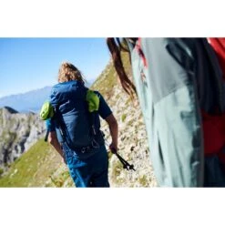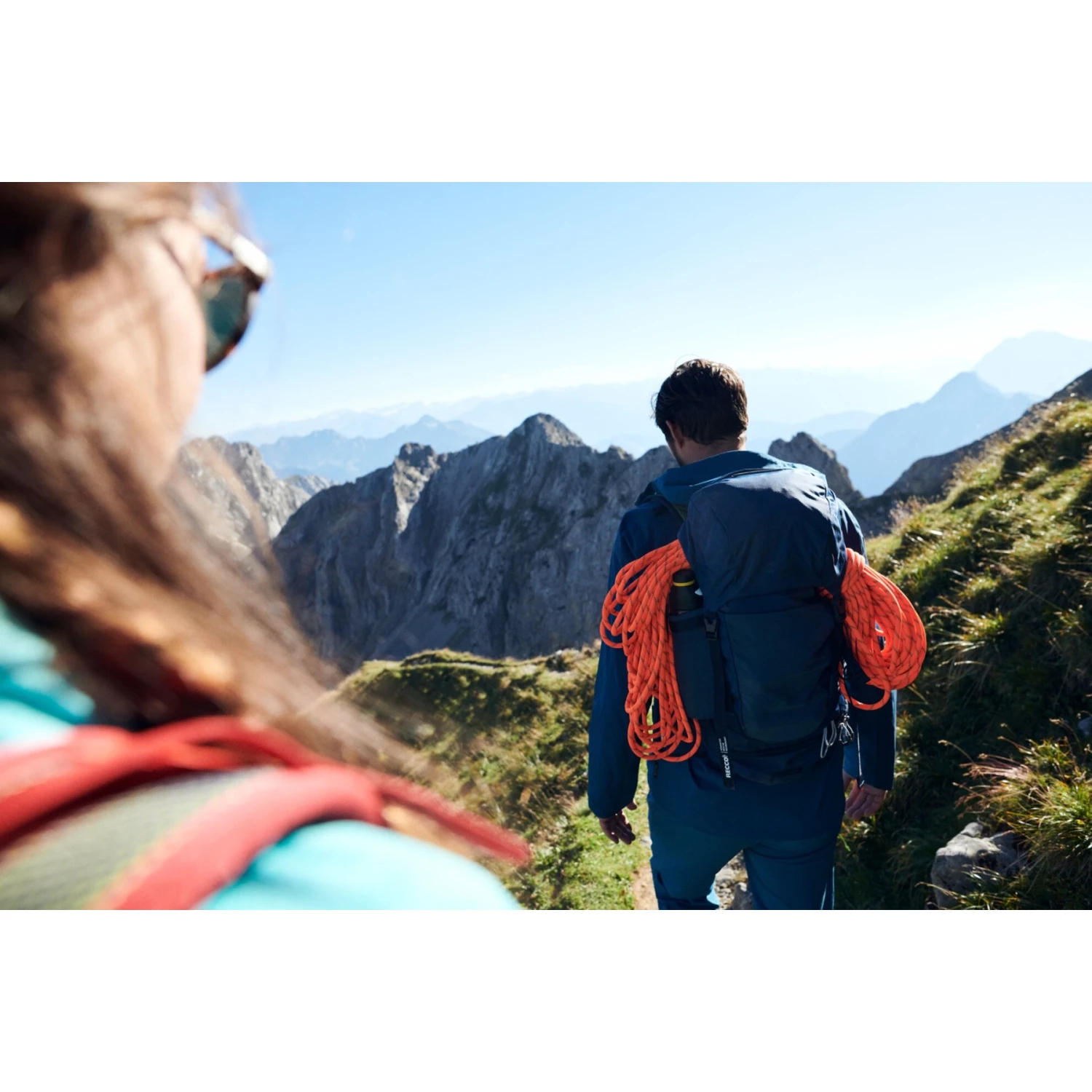 The spacious main compartment and the two zippered compartments in the lid offer plenty of storage space. You can separate the bottom compartment from the main compartment and store your sleeping bag. In the two elastic mesh side pockets you have your water bottles always at hand. Your wet rain jacket can be stowed in the front mesh pocket. In the mesh pocket on the hip belt, small items are quickly at hand. A RECCO chip allows faster location by rescue services.