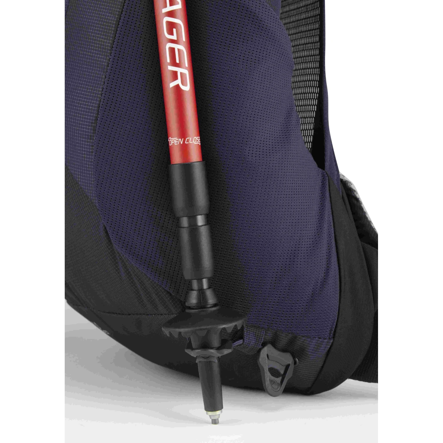 The lightweight, spring-loaded steel frame system allows for efficient load transfer that is especially comfortable on hikes, with front storage pocket, TipGripper hiking pole loops, top tension straps, sternum strap and integrated rain cover. Although the hydration system-compatible AirZone Active 18 is designed for (mountain) hiking, it is just as suitable for weekend and city trips. In addition to side pockets made of elastic mesh material, other useful features include a key clip, a loop for bike lights, a zippered security pocket and an appealing urban aesthetic.