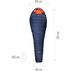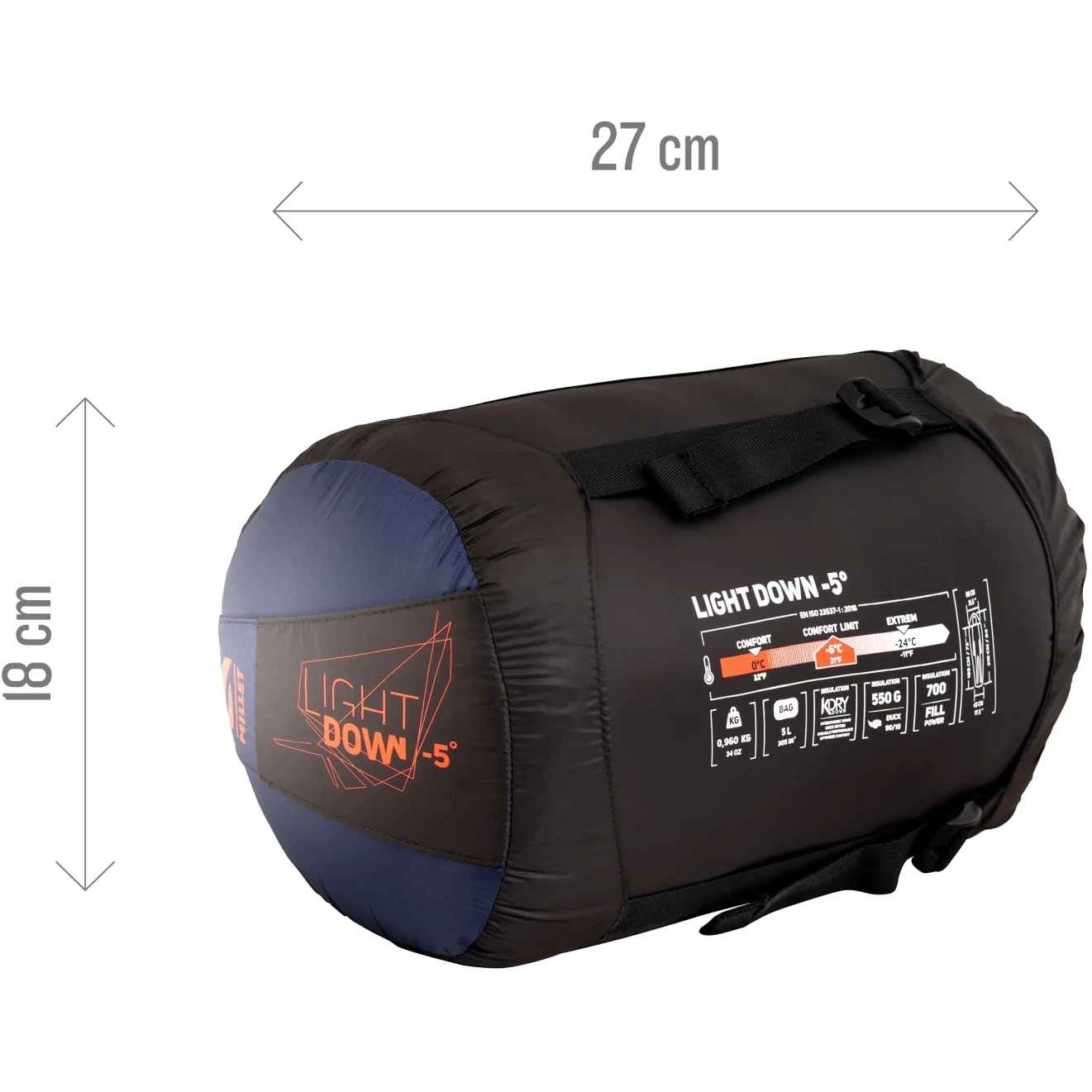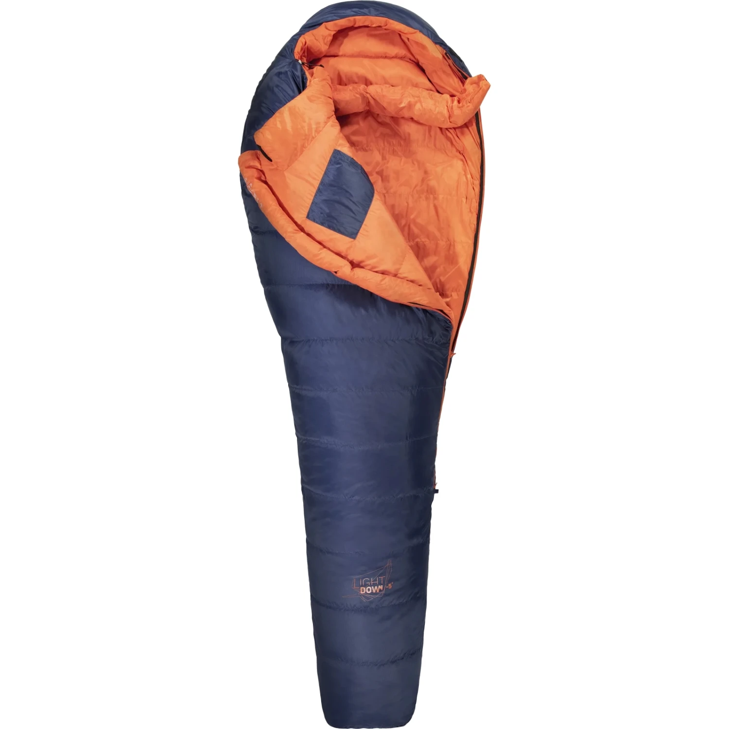 Sleeping bag for bivouacking in the mountains. The down insulation keeps the body temperature constant at outdoor temperatures down to -5 ° C. With the best ratio of thermal performance to weight, the sleeping bag comes up with the unmatched thermal protection of down. In addition, the insulation with 90% down versus 10% feathers provides safe heat retention with high compressibility, so the sleeping bag can also be easily stored in the shell.