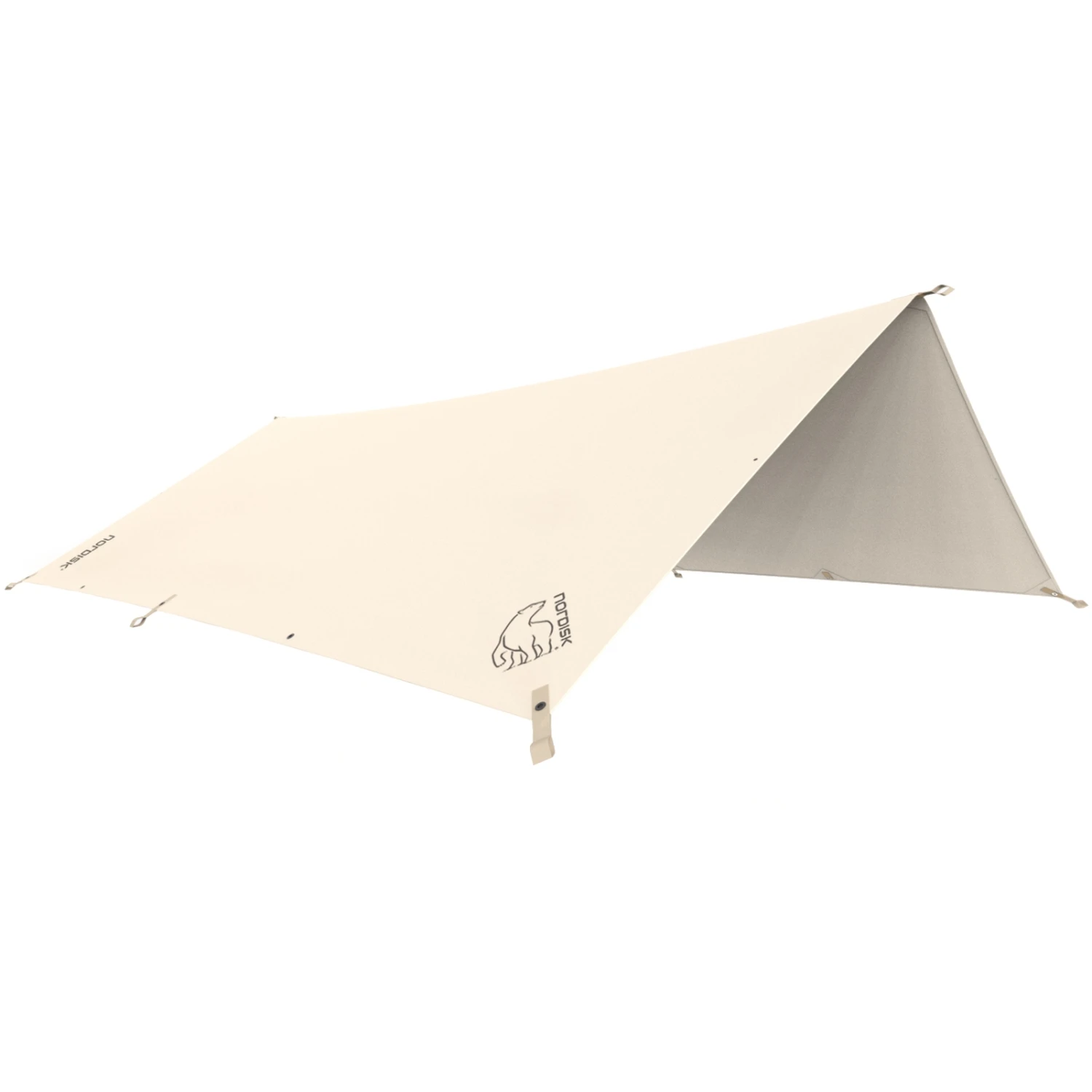 With the new 8 m² version of the classic Kari Tarps you can now create large outdoor areas a beautiful and reliable protection from rain and sun. Add a porch to your tent, build an outdoor kitchen with a roof, or permanently protect your favorite outdoor space from all weather conditions so your tent always stays dry, bright and inviting. The is an 8 m² cotton tarp that matches the rest of Nordisk’s cotton range and can be used with or without a tent.