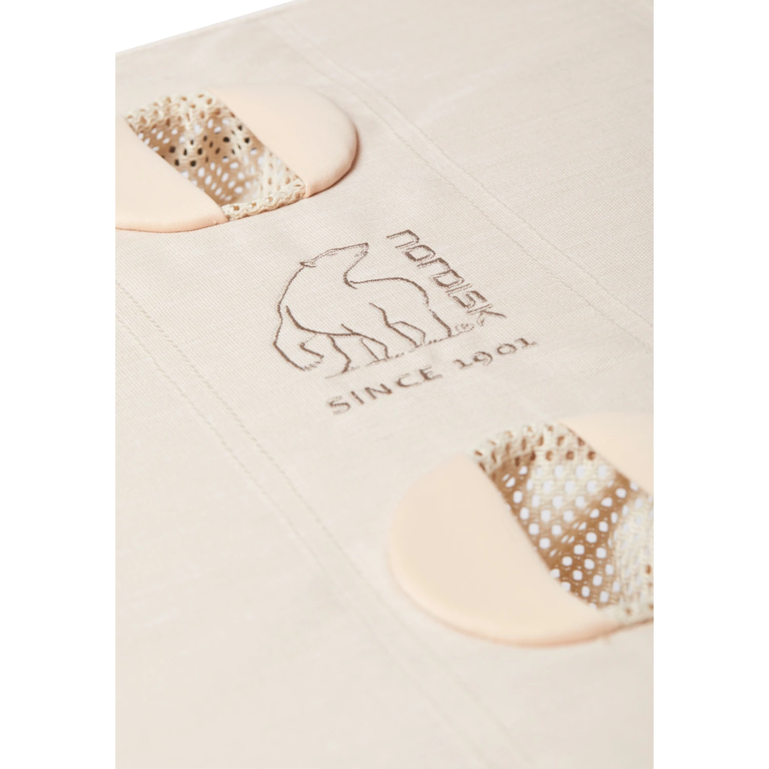 The small, lightweight table completes the lounge area. It has a hard table top with fabric cover and is foldable. The table is sturdy, durable and is made of a packable aluminum frame and a special new fabric from Nordisk. The fabric has the look of canvas, the lightness of linen and looks stylish at the same time.