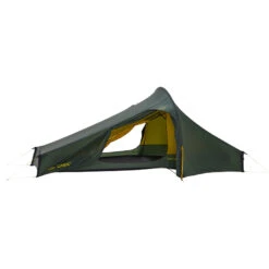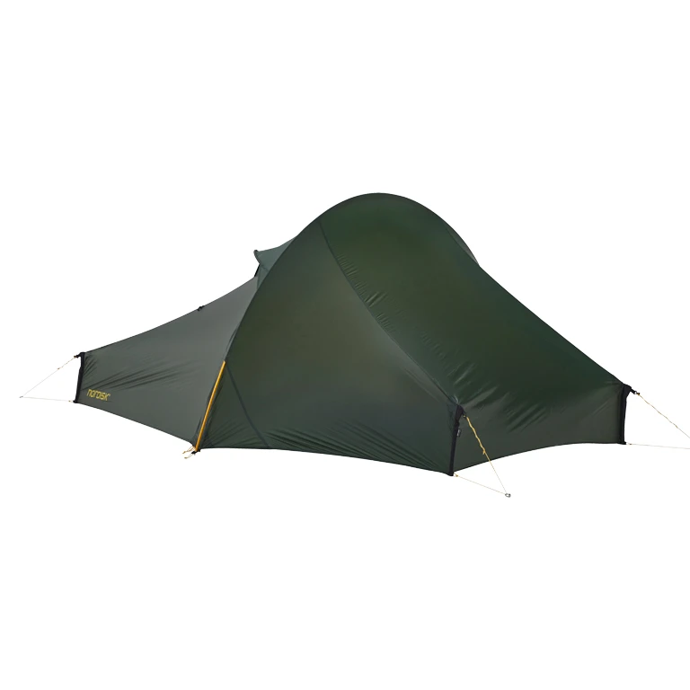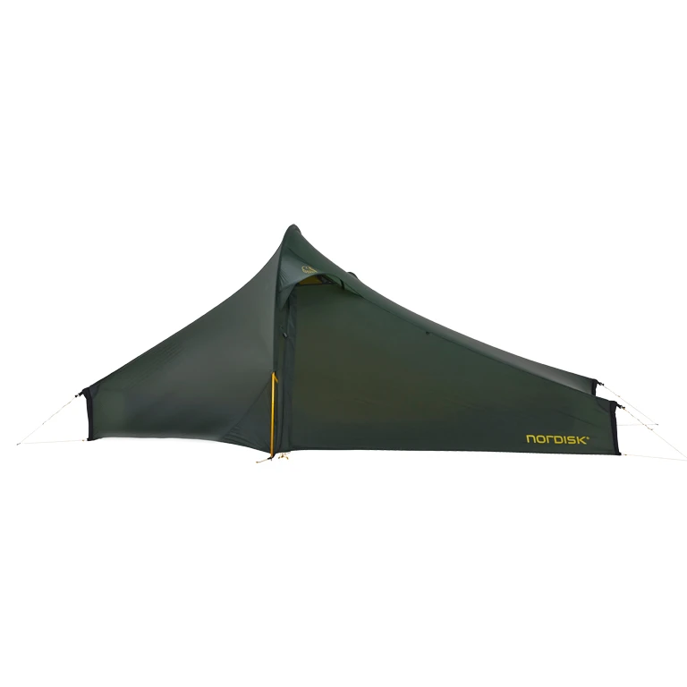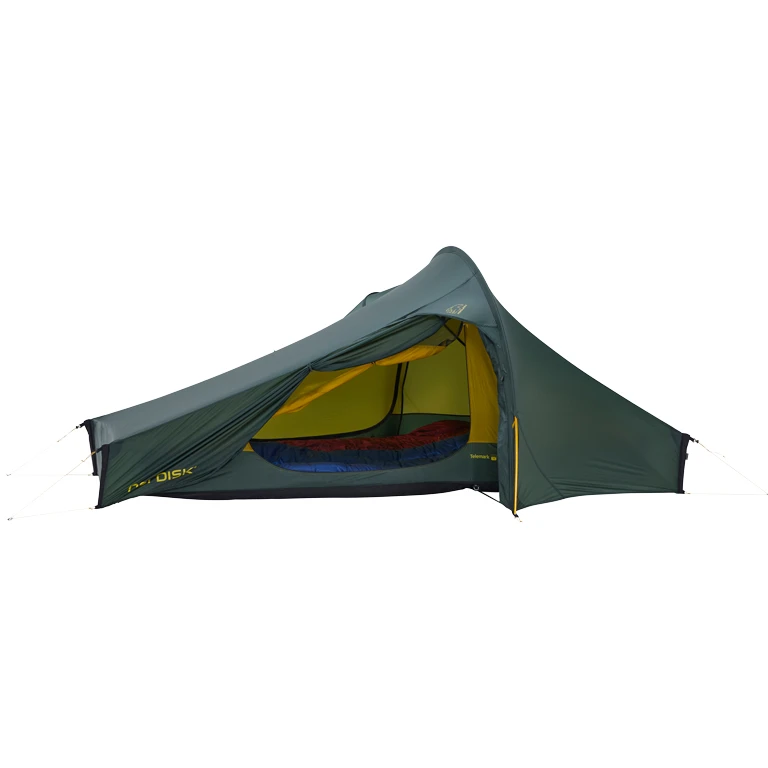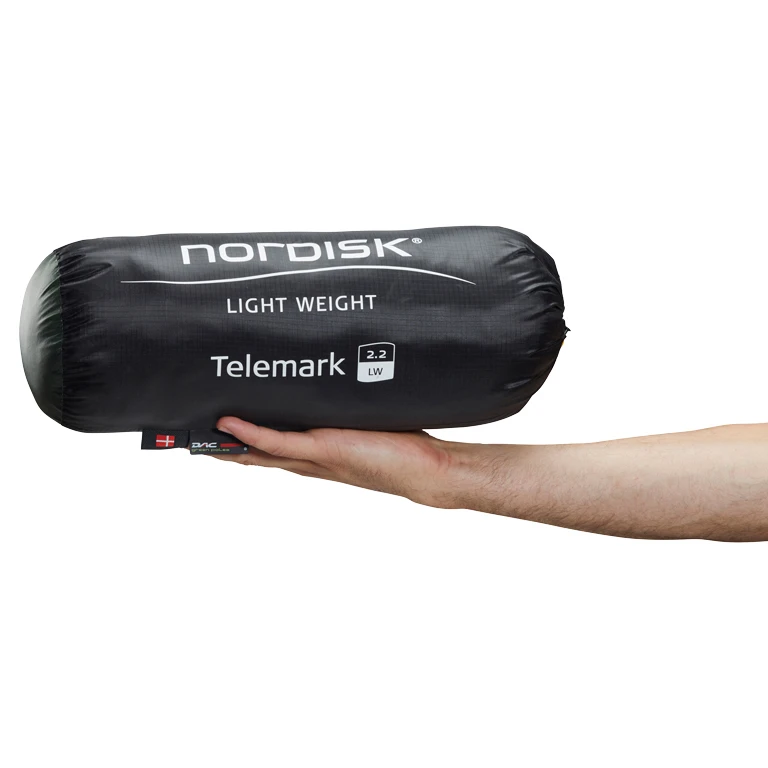 The features an entrance on each side for quick entry and exit. This lightweight and durable tent is especially popular with backpackers, ultra-long distance runners and adventurers alike. The small pack size and technically sophisticated construction combined with state-of-the-art components make it a perfect travel companion. The poles are made of DAC aluminum with Nordisk Triple Twister aluminum pegs. Despite the low weight, no compromises have been made, neither in function nor in comfort. The Telemark 2.2 LW 2-person tent is well ventilated and has easily adjustable guy lines, magnetic quick-release door locks, interior storage pockets, and it offers the ability to convert the outer door into a canopy using the three corner poles and guy line provided.