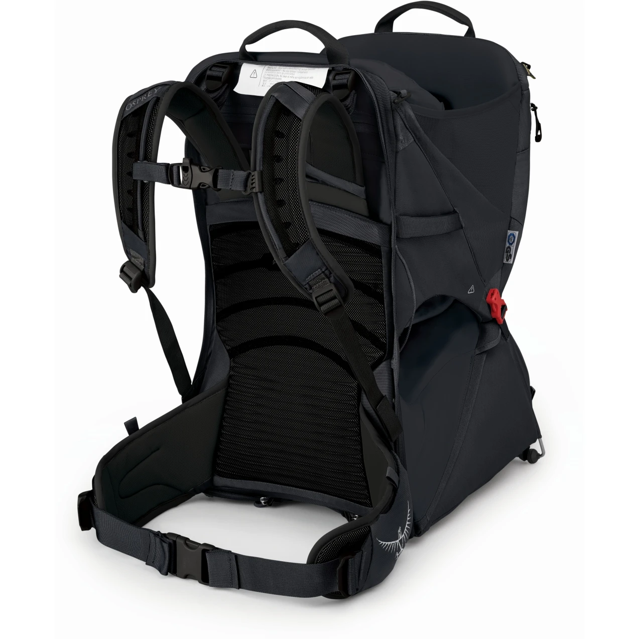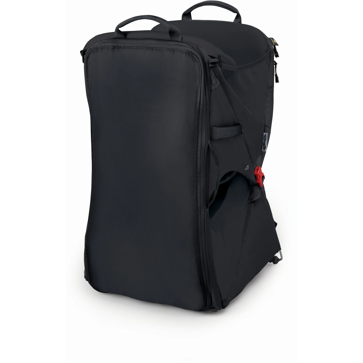 – Our patent-pending stainless steel frame folds down even smaller than other standard child carriers – especially convenient for travel and storage. The frame locks in place when in use to support the full weight of the child. Thanks to the stable base, the carrier can be set down easily.