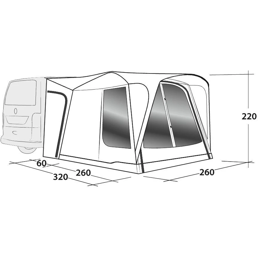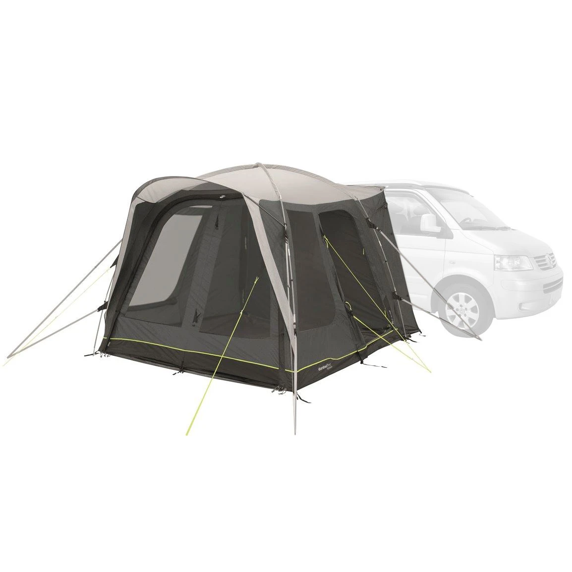 The Milestone Shade freestanding dome awning is perfect for smaller campsites. It has a door on the side of the Link Access Zone and a side entrance, as well as a fabric track for height adjustment on the inside. The awning attaches quickly and easily to buses with heights between 175 and 200 cm. The flat-folding front door under the rounded canopy is equipped with a mosquito net, and the ventilation opening at the top, protected by mesh fabric, improves the climate inside the tent.