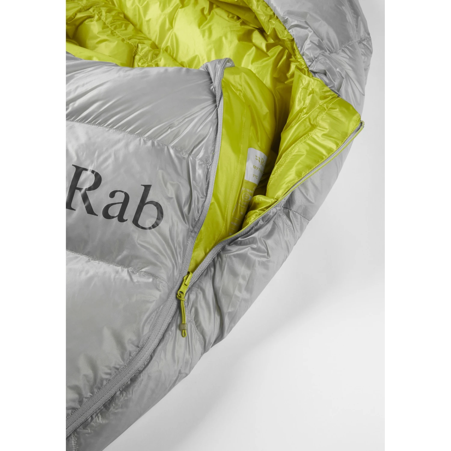 The Mythic 200 down sleeping bag offers an excellent warmth-to-weight ratio by using goose down with extremely high loft and a lightweight construction. Designed for fast mountain trips, this sleeping bag is suitable for spring and summer when weight and pack size are critical to success. The Mythic 200’s outer fabric is made of durable Atmosâ„¢ fabric and is filled with 200g of the highest loft European goose down. Each sleeping bag is hand filled in England, Derbyshire with hydrophobic down developed in conjunction with Nikwax®.