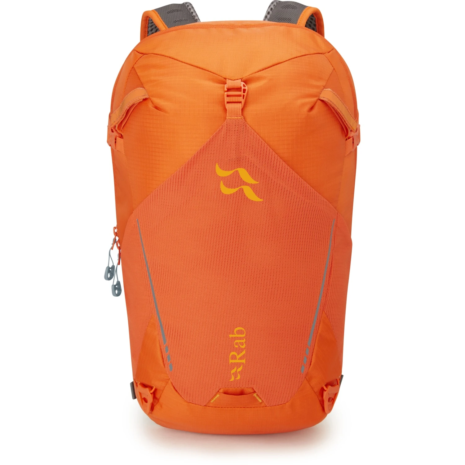 A front zippered compartment provides quick access to provisions, while an internal security pocket, top zippered compartment and key clip secure your valuables. With stretch side pockets for bottles, the pack is compatible with hydration systems, and reflective graphics and a light attachment ensure you’ll be easily seen after dark.