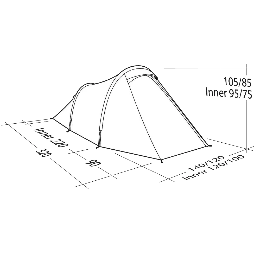 The simple tapered twin-hoop design of the Arch 2 tunnel tent is an ever-popular choice with cyclists, trekkers and other lightweight campers and this tent offers all the features and comfort required for less demanding adventures. The Arch 2 pitches quickly and easily, making it the ideal shelter for self-propelled travellers who, at the end of an exhausting day, want to relax in generous internal space with a handy porch for storage.