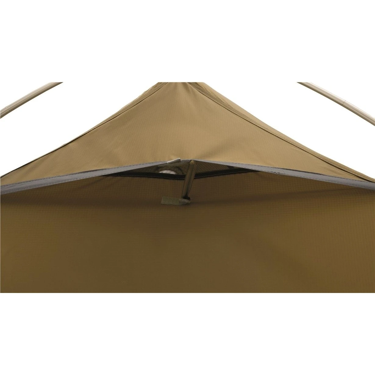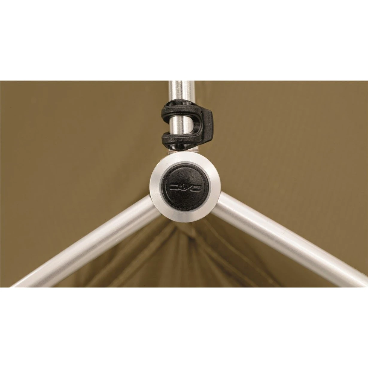 - Resilient alloy fitting links pole to tent under tension