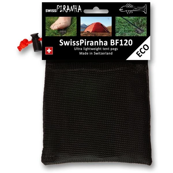The SwissPiranha BF120 is the environmentally friendly and lighter version of the popular RT150. This peg is made of 100% recycled plastic and convinces with a low weight of only 6g at 12cm length. This makes it especially interesting for longer tents with many guy points!
