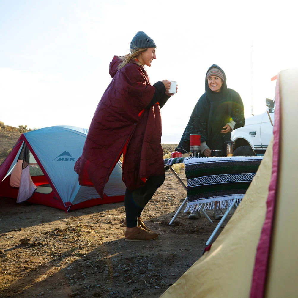 A lot of pleasure and practical features. Depending on your needs. The Honcho Poncho provides extra warmth and is water resistant. Can be used as a blanket or as a poncho for any outdoor adventure. It is especially comfortable to wear around the campfire or can provide extra warmth as part of your sleeping system. The stylish poncho with synthetic insulation can be stowed in the pouch pocket and taken anywhere.