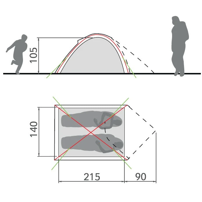 Versatile two-person tent with uncomplicated setup, good ventilation and robust aluminum poles.
