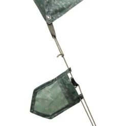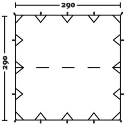 The , with dimensions 290 x 290 cm, is a 9 m2 universal canopy. Multiple guy lines offer a wide range of use: from an additional roof to a replacement tent. The camouflage pattern blends in with the surroundings in terms of color and offers an inconspicuous overnight stay in wooded areas or in wild nature. All guy points are reinforced with webbing and have fixed brass eyelets.